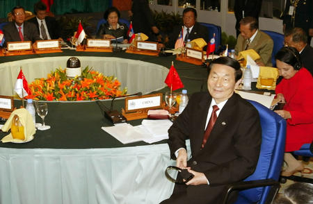 时任中国国务院总理朱镕基和东盟各国领导人签署《南海各方行为宣言》